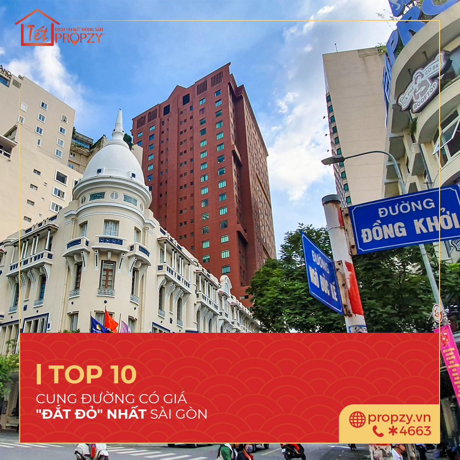 Một tuyến đường khác tại trung tâm quận 1 với rất nhiều hàng quán, nhà hàng, ngân hàng, trung tâm thương mại lớn, nhà thờ Đức Bà,… rất sầm uất và có mức giá bán cao thứ 3 trong danh sách này là Đồng Khởi (phường Bến Nghé) với mức giá trung bình được thống kê là xấp xỉ 1 tỷ đồng/m2.