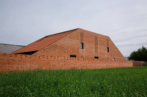Các kiến trúc sư của Tropical Space đã thiết kế một ngôi nhà mái ngói xây hoàn toàn bằng gạch mộc, có dạng kết cấu hình thang.