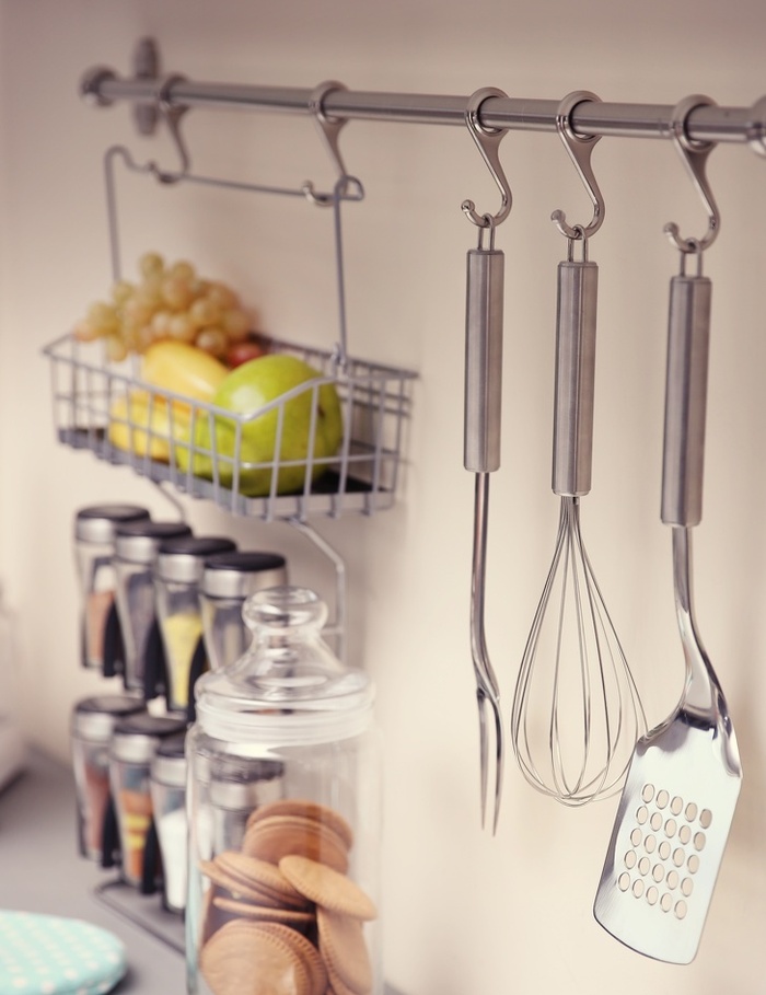 Diện tích căn phòng nhỏ nên việc thứ gì cũng bày ra sẽ khiến nơi ở của bạn thêm chật hẹp. Để khắc phục điều này, tại sao bạn không thiết kế những chiếc móc treo sau cánh cửa, tường nhà và sắp xếp những vật dụng sinh hoạt vào đó nhỉ. Đây sẽ là một ý tưởng không tồi đâu.