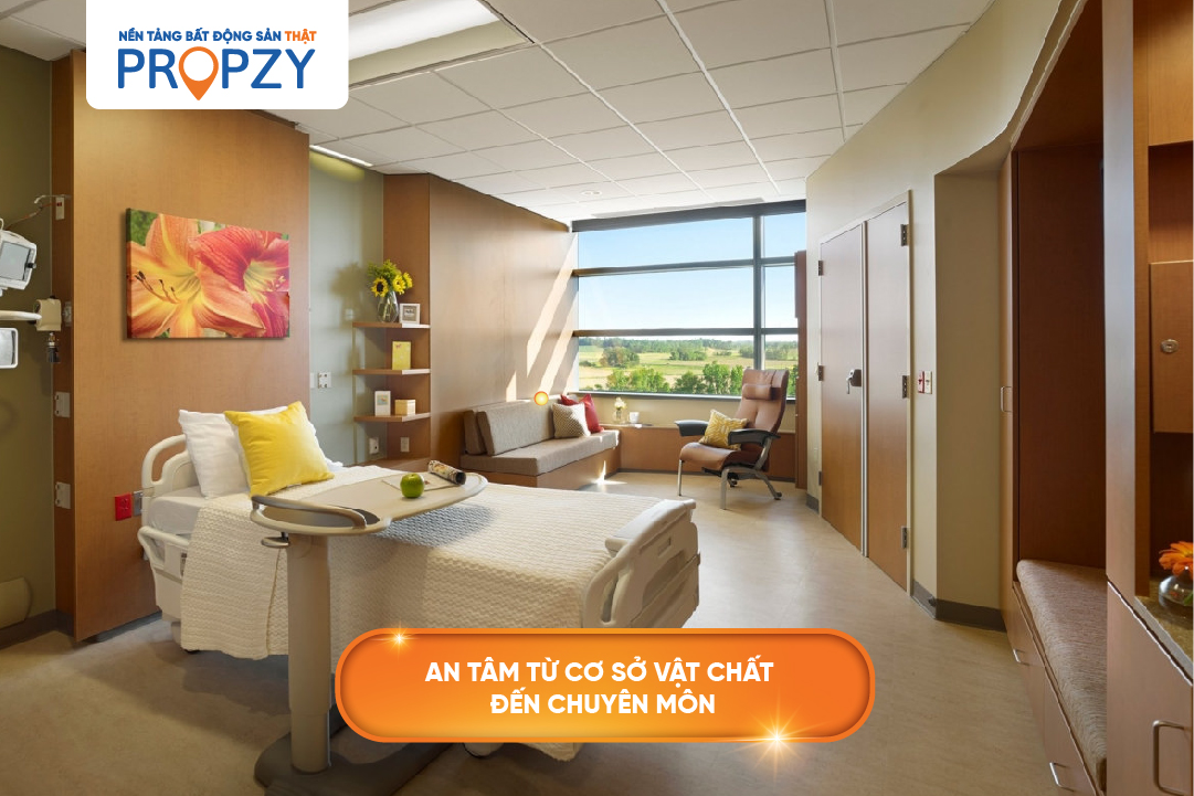 Ngoài hệ thống trang thiết bị hiện đại theo tiêu chuẩn quốc tế, phục vụ cho việc khám chữa bệnh, việc thiết kế phòng bệnh sang trọng đã trở thành một điểm nhấn cho dịch vụ 5 sao trong lĩnh vực y tế như: ứng dụng nhiều thiết bị công nghệ hiện đại, tiện nghi (tivi LED, Internet, thiết bị kết nối nhân viên y tế,…), nội thất được chọn lựa kỹ lưỡng, đảm bảo sự an toàn và thoải mái khi bệnh nhân (ví dụ như chọn gạch phải có tính năng chống trơn trượt, tranh ảnh phải mang lại hiệu ứng thị giác giúp người bệnh nhìn thấy thoải mái tâm lý hơn).