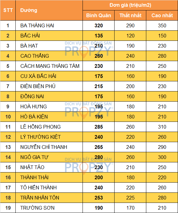 • BẢNG GIÁ BẤT ĐỘNG SẢN QUẬN 10 MỚI NHẤT