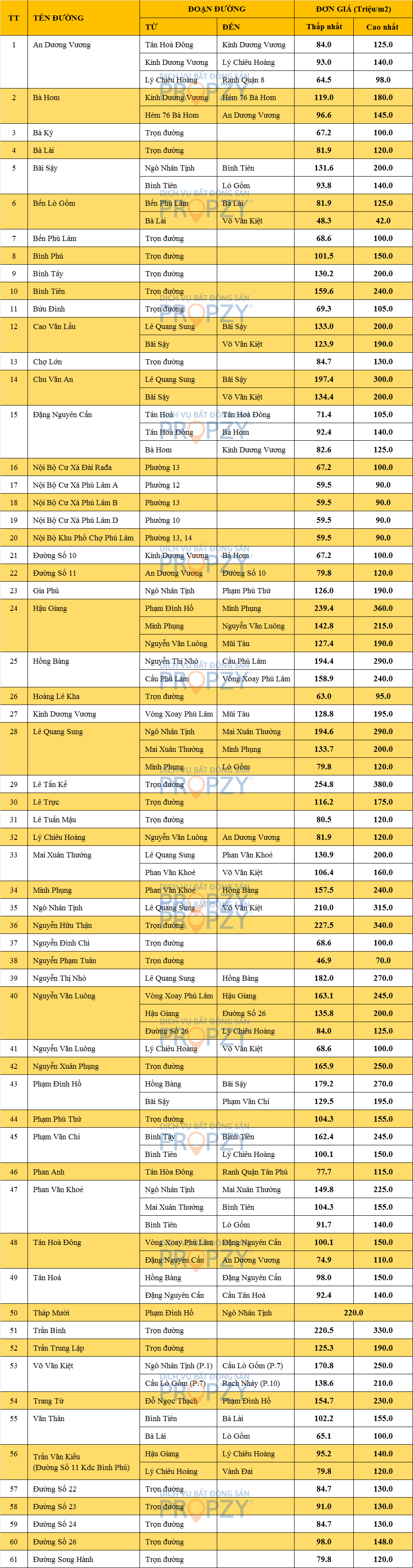 - Giá đất bất động sản đã được xác thực tại Quận 6