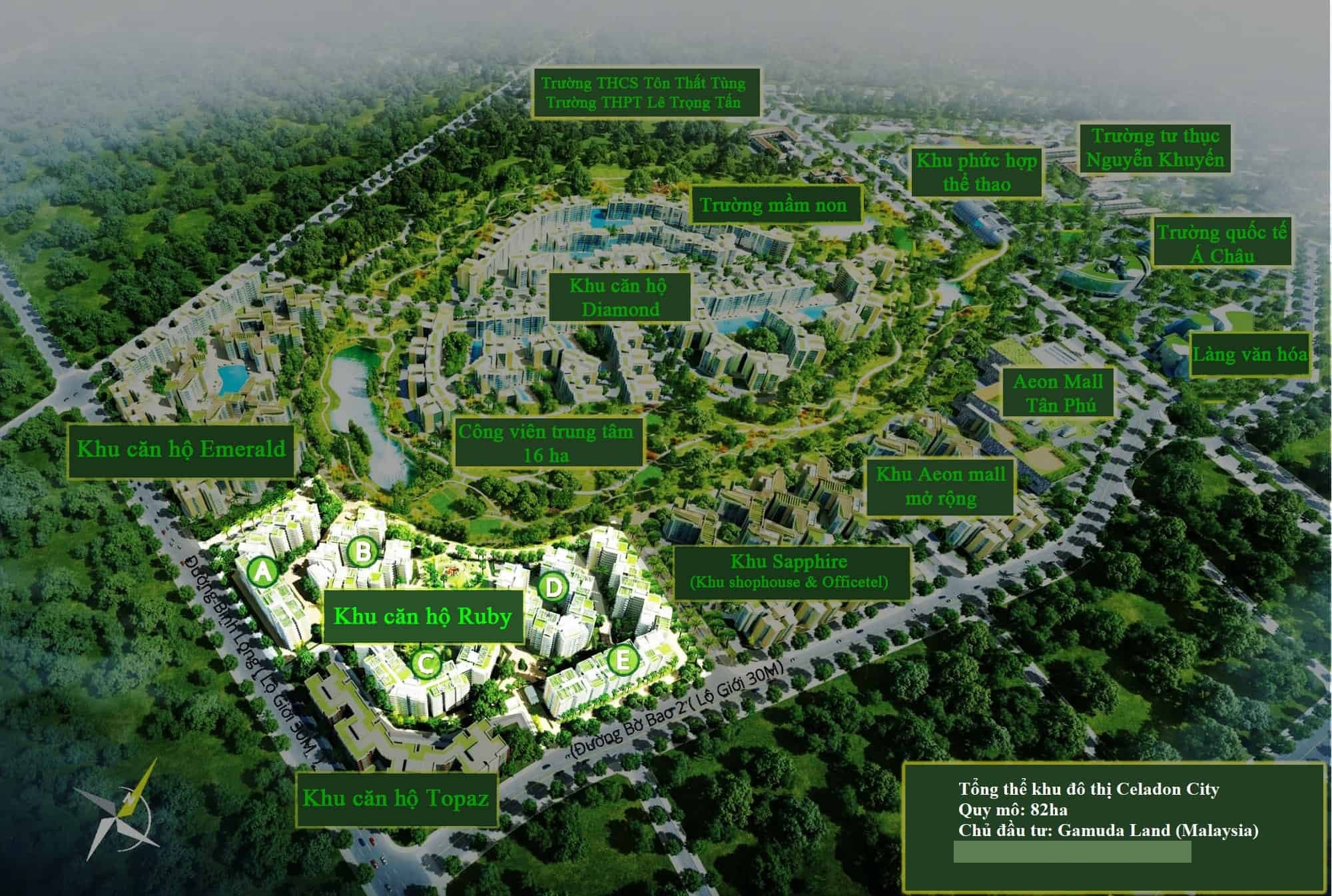 Tiếp nối thành công của nhiều dự án tại Malaysia, Singapore và Úc, tập đoàn Gamuda Land tiếp tục kiến tạo và phát triển khu đô thị sinh thái Celadon City. Tại đây, với điểm nhấn 16ha công viên bao quanh dự án cùng đầy đủ mọi tiện ích tạo nên một khu đô thị hiện đại và thiên nhiên xanh mát.