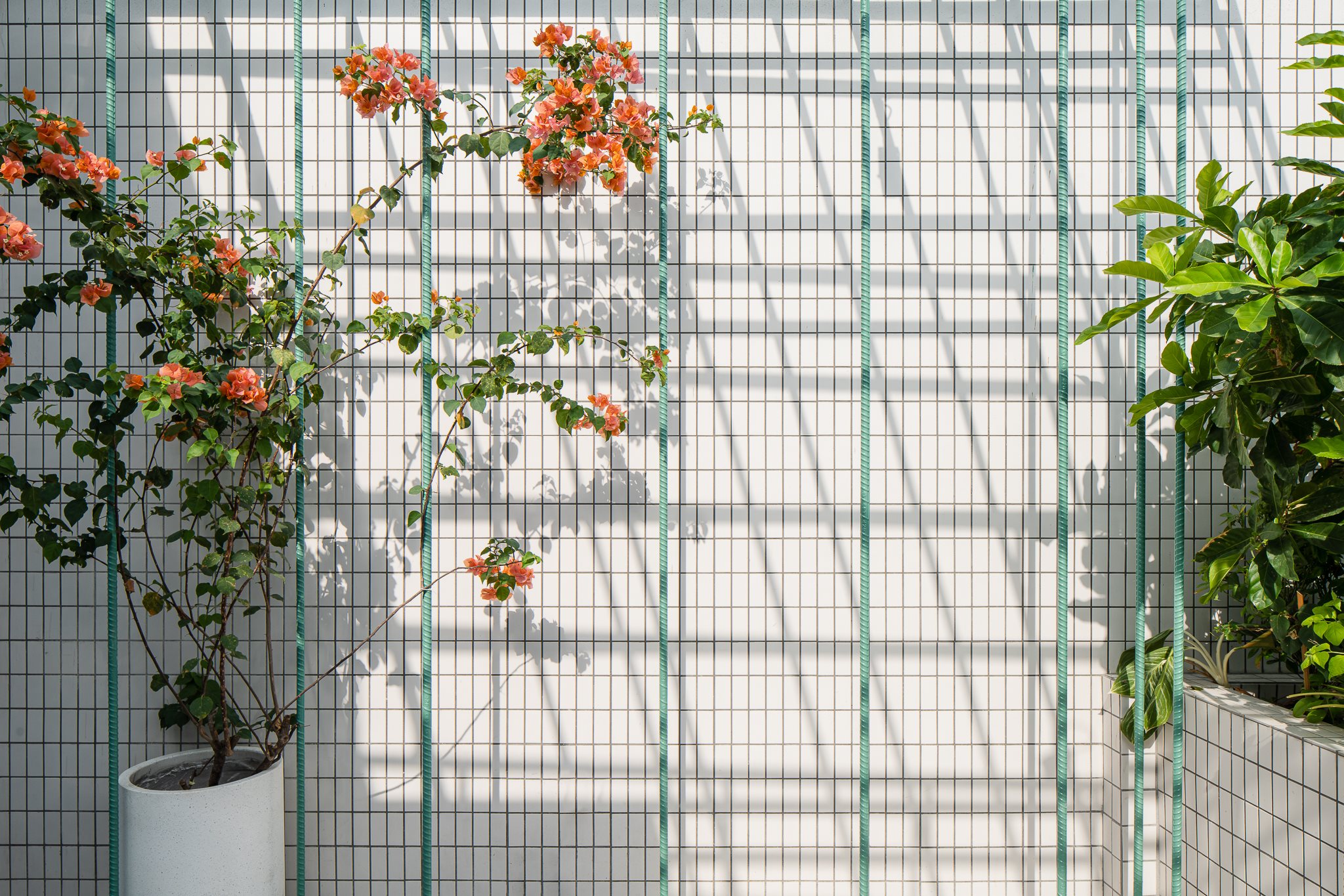 Một phần không gian tầng hai được dùng làm khoảng thở để trồng cây và thưởng trà.