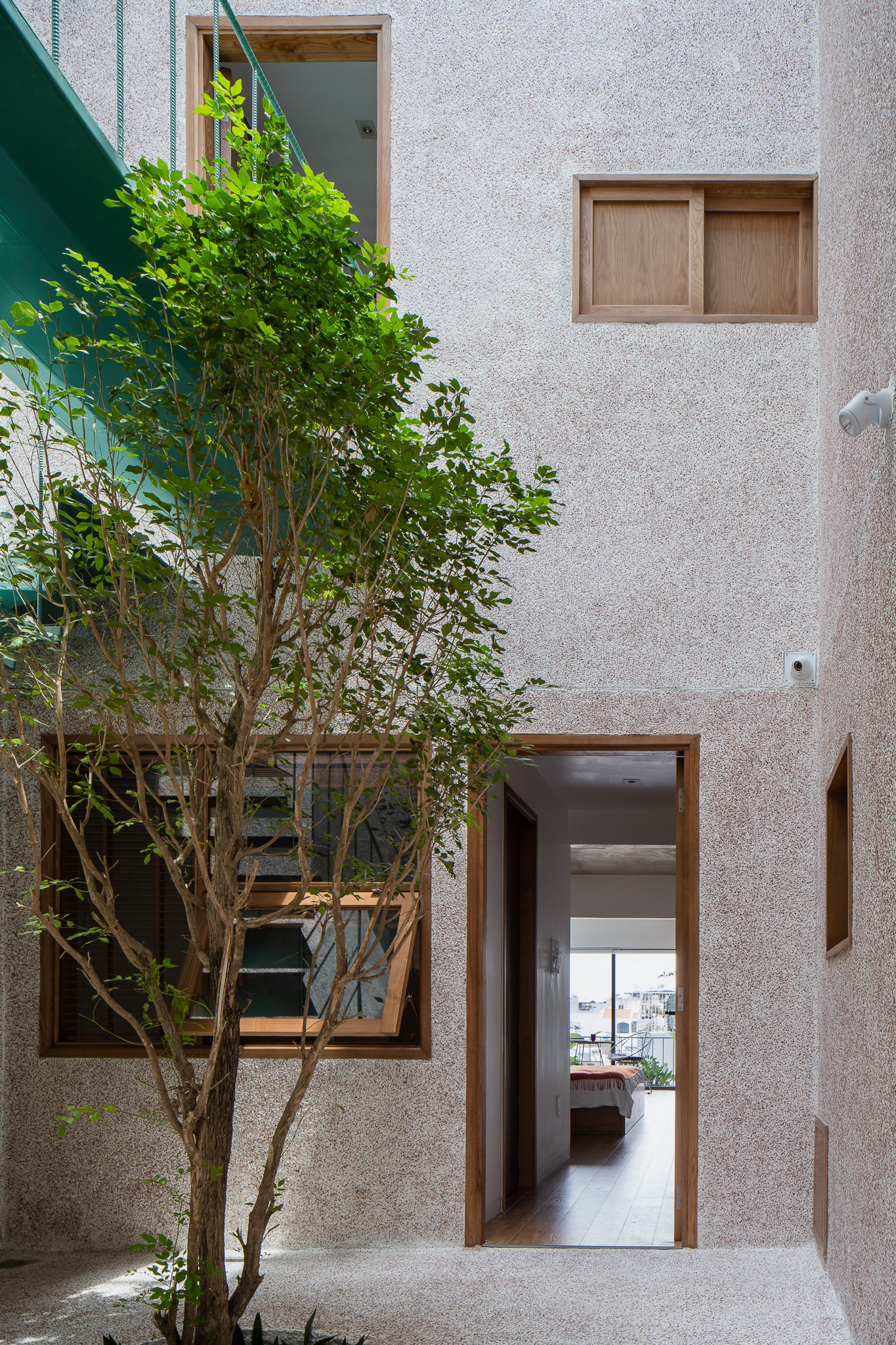 Dự án căn hộ ban đầu là một trong những “ca khó” với rất nhiều yêu cầu về công năng. Đầu tiên khu đất diện tích 5x17m nằm trong một dãy phố ở Quận 7 với những quy hoạch bắt buộc về cao độ, khoảng lùi, ban công. Vì bố mẹ yêu tích cây xanh nên bản thiết kế phải gần gũi thiên nhiên nhưng cũng đáp ứng những công năng thực tế: cho thuê văn phòng ở tầng trệt và bốn phòng đầy đủ tiện ích để kinh doanh Airbnb. Đồng thời tính toán những phương án trong vòng 5 – 10 năm tới vẫn phù hợp trường hợp Khánh Vy lập gia đình hay có con.