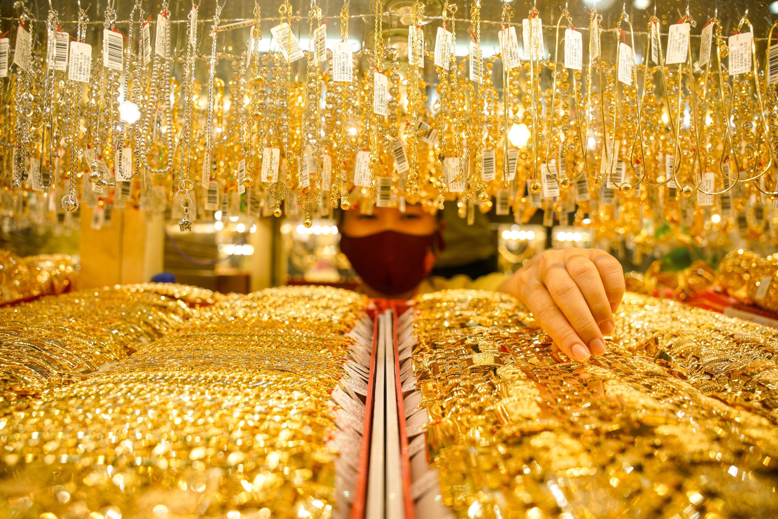 Giá vàng thế giới vượt xa mốc 2.000 USD/ounce tác động khiến giá vàng miếng trong nước sáng 5/8 tăng lên mốc 58,7 triệu đồng/lượng. Ảnh: Chí Hùng.