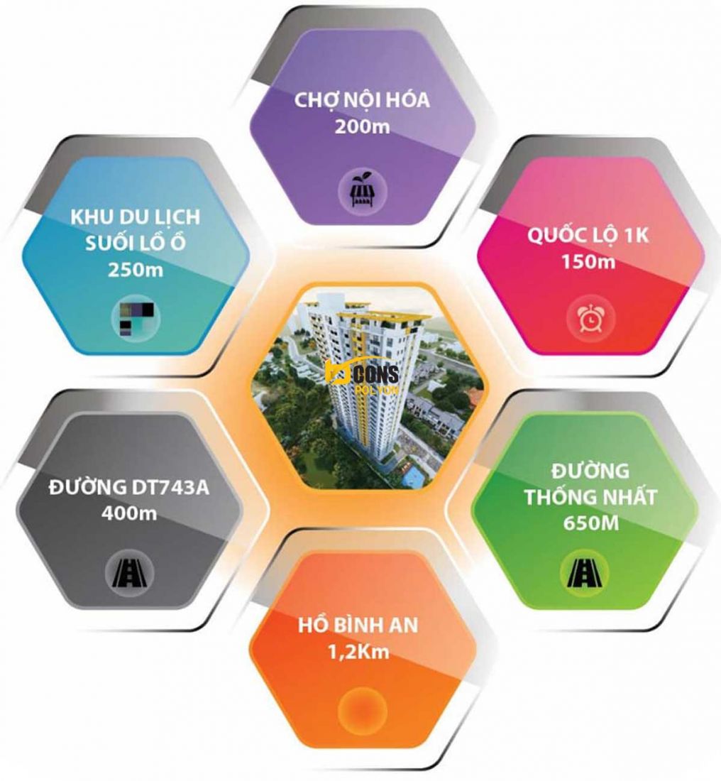 - 400m -1km: Bcons Polygon > bệnh viện hoàn hảo;bệnh viện hạnh phúc; Làng Đại học Quốc gia TP.Hồ Chí Minh; Bệnh viện Thủ Đức; Đại Học SPKT TP.Hồ Chí Minh