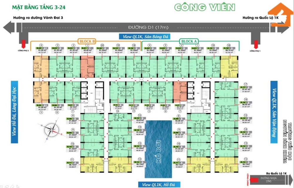Mật độ xây dựng: 33.08%Số lượng căn hộ/Tầng: 19