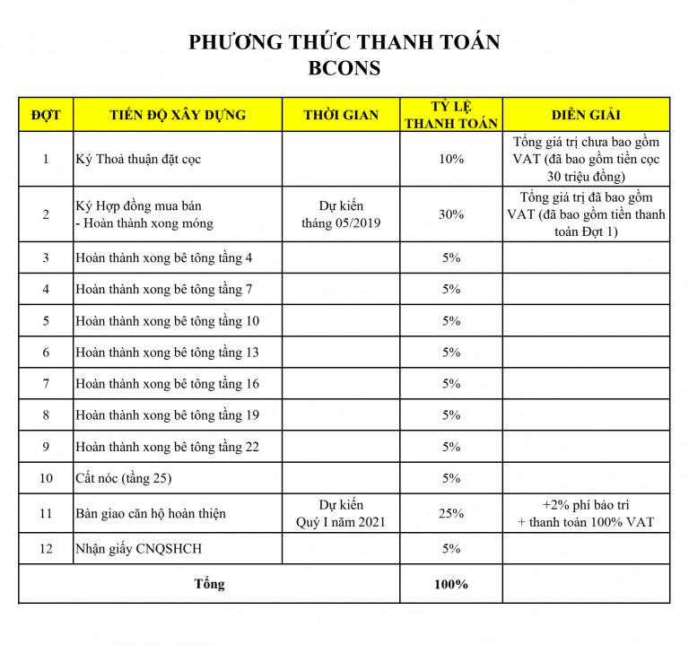 Vào thời điểm này dự án đã gần hoàn chỉnh, vừa cất nóc xong, chủ đầu tư Bcons đang hoàn thiện trong và ngoài căn hộ nhằm đảm bảo chất lượng tốt nhất cho cư dân và vấn đề pháp lý nhà đầu tư cũng như người mua ở không lo nữa, Do đó, giá trị bất động sản sẽ tăng từ 10 – 15% cho tới lúc nhận nhà và nhận sổ.