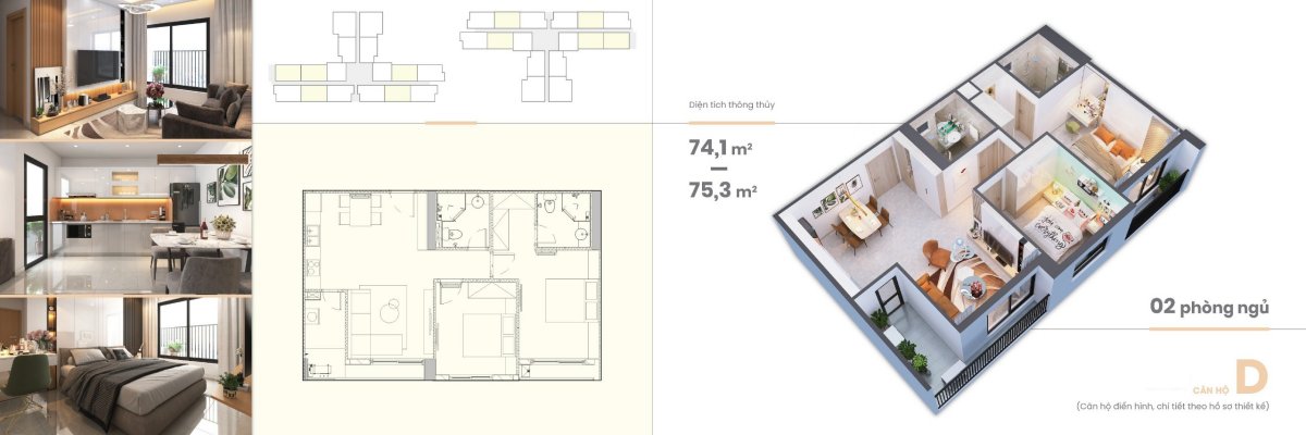 Tầng 1 và tầng 2: Sảnh vào khu căn hộ và các phòng kỹ thuật, phòng bơm.