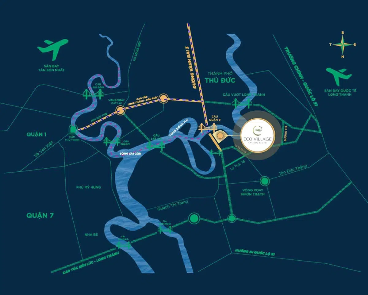 Ngoài ra, nhờ tuyến đường liên tỉnh DT769, Eco Village Saigon River tiện lợi kết nối mạch giao thông huyết mạch của khu vực cửa ngõ giữa khu Đông Sài Gòn với tỉnh Đồng Nai. Đồng thời, dự án cũng thuận tiện di chuyển đến các trung tâm kinh tế tại Biên Hòa, Vũng Tàu, các cụm khu công nghiệp Đồng Nai,…
