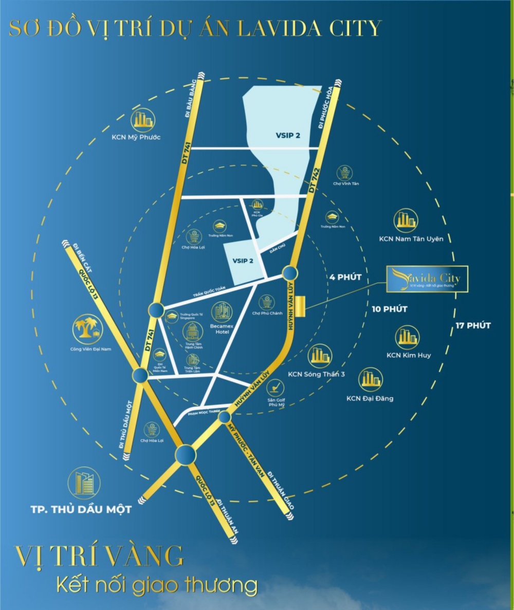 Lavida City hay còn được biết đến với tên gọi khác là dự án Dragon City 2, được quy hoạch ngay bên trục đường ĐT742, thuộc phường Phú Chánh, Thị xã Tân Uyên, tỉnh Bình Dương.