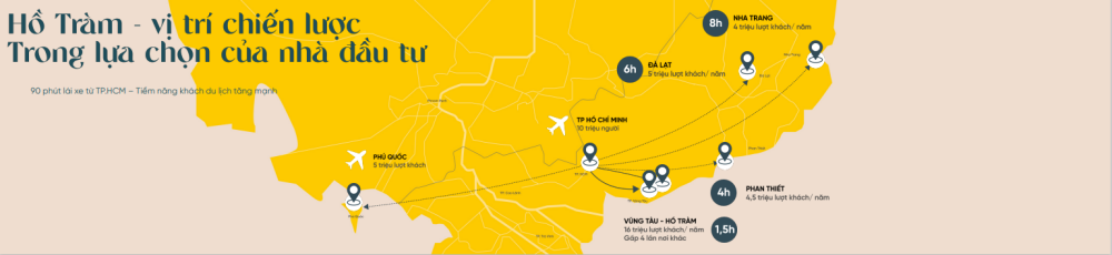 + 2 phút – 5 phút: Trung tâm thương mại Hồ Tràm, Trung tâm Wellness (5.000m2) lớn nhất khu vực phía Nam, chợ đêm ẩm thực Hồ Tràm.