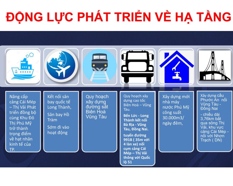 - Nâng cấp cảng Cái Mép – Thị Vải Phát triển đồng bộ cùng Khu Đô Thị Phú Mỹ trở thành trọng điểm về hạt nhân kinh tế của TP;
