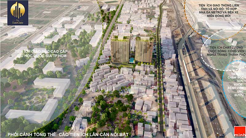 Đáng chú ý hơn, vị trí dự án The East Gate cũng là trạm cuối của tuyến Metro Bến Thành – Suối Tiên dự kiến sẽ được đưa vào hoạt động trong năm 2020. Các tuyến đường trong khu vực này đều đã hoàn thiện, do đó cư dân dễ dàng kết nối thông suốt và tiếp cận nhanh chóng tới các tiện ích hiện hữu xung quanh dự án.