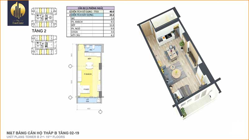 The East Gate toạ lạc tại vị trí đắc địa nằm trên Đại lộ biệt lập. The East Gate là dự án căn hộ trung cấp sở hữu tầm nhìn View đẹp. Khai thác tối đa ưu điểm về vị trí, The East Gate được thiết kế Logia thoáng rộng gia chủ có được đặc quyền trải nghiệm một không gian sống giữa lưng chừng trời.
