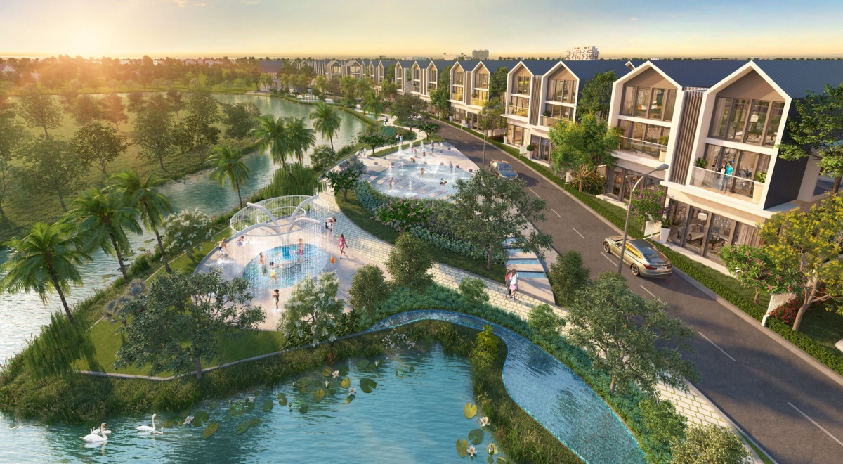 Tiện ích nội khu: Công viên cây xanh chiếm gần 7%, được bố trí phù hợp dọc theo lối vào, xen kẽ giữa các sản phẩm của dự án, để tạo thành một không gian sống xanh mát và trong lành.