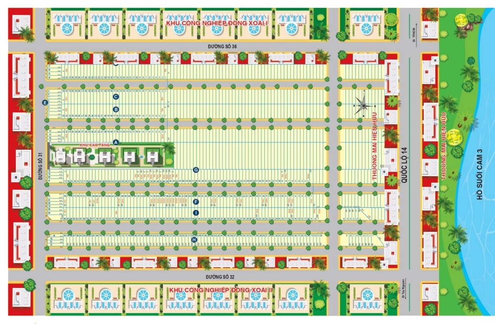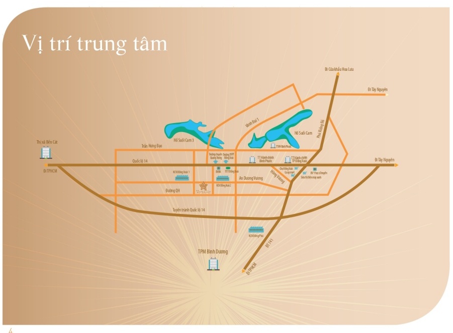 VỊ TRÍ: Quốc lộ 14, giữa hai KCN Đồng Xoài 1, Đồng Xoài 2, đồng thời liền kề trung tâm thương mại The Light City quy mô 3,3ha