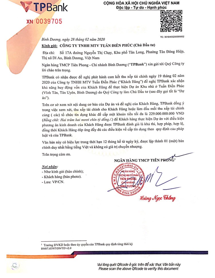 3. Ngân hàng TP Bank hỗ trợ vay và bão lãnh dự án.