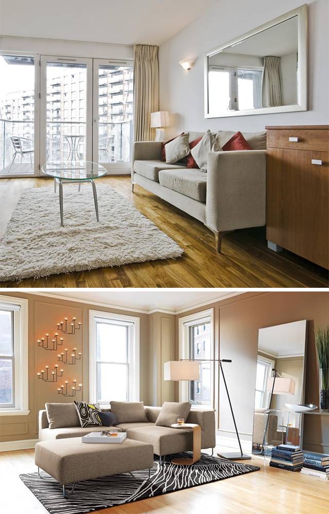 Với một căn phòng nhỏ, sử dụng những chiếc gương hợp lý sẽ giúp nới rộng diện tích ra. Không chỉ thế, bằng cách sắp xếp khéo léo những chiếc gương, phòng khách nhà bạn còn có thể nhân đôi ánh sáng. Bí quyết nằm ở nguyên lý phản xạ ánh sáng vô cùng cơ bản.