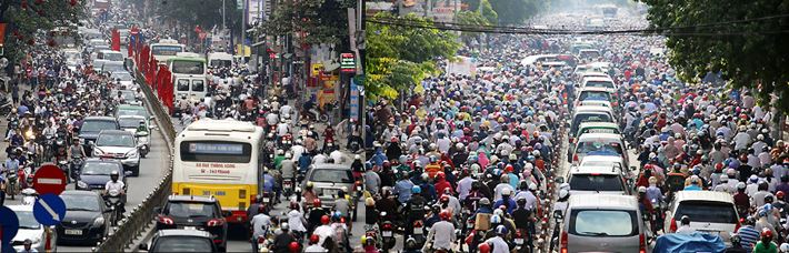 Mật độ dân số đông khiến cả 2 thành phố luôn ùn tắc vào giờ cao điểm.