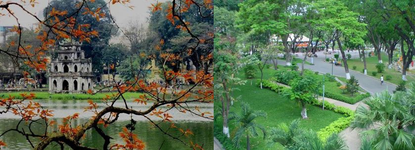 Hà Nội được biết đến với rất nhiều hồ: hồ Gươm, hồ Tây, hồ Bảy Mẫu, hồ Thành Công… Công viên ở Hà Nội thì khá ít, chủ yếu có mấy công viên khá rộng là Thống Nhất, Hòa Bình, công viên Yên Sở. Sài Gòn thì ít thấy hồ, chủ yếu là công viên, sông và kênh rạch. Công viên ở Sài Gòn không rộng, nhưng rất nhiều. Cứ đi một vài con đường sẽ thấy một góc công viên đầy cây xanh.
