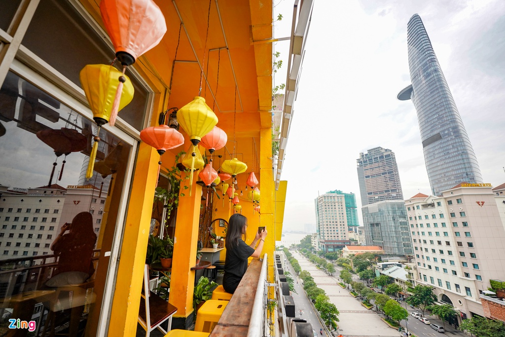Những căn chung cư cũ có ban công bao trọn đường Nguyễn Huệ luôn được giới kinh doanh ngành F&B săn đón. Ảnh: Chí Hùng.