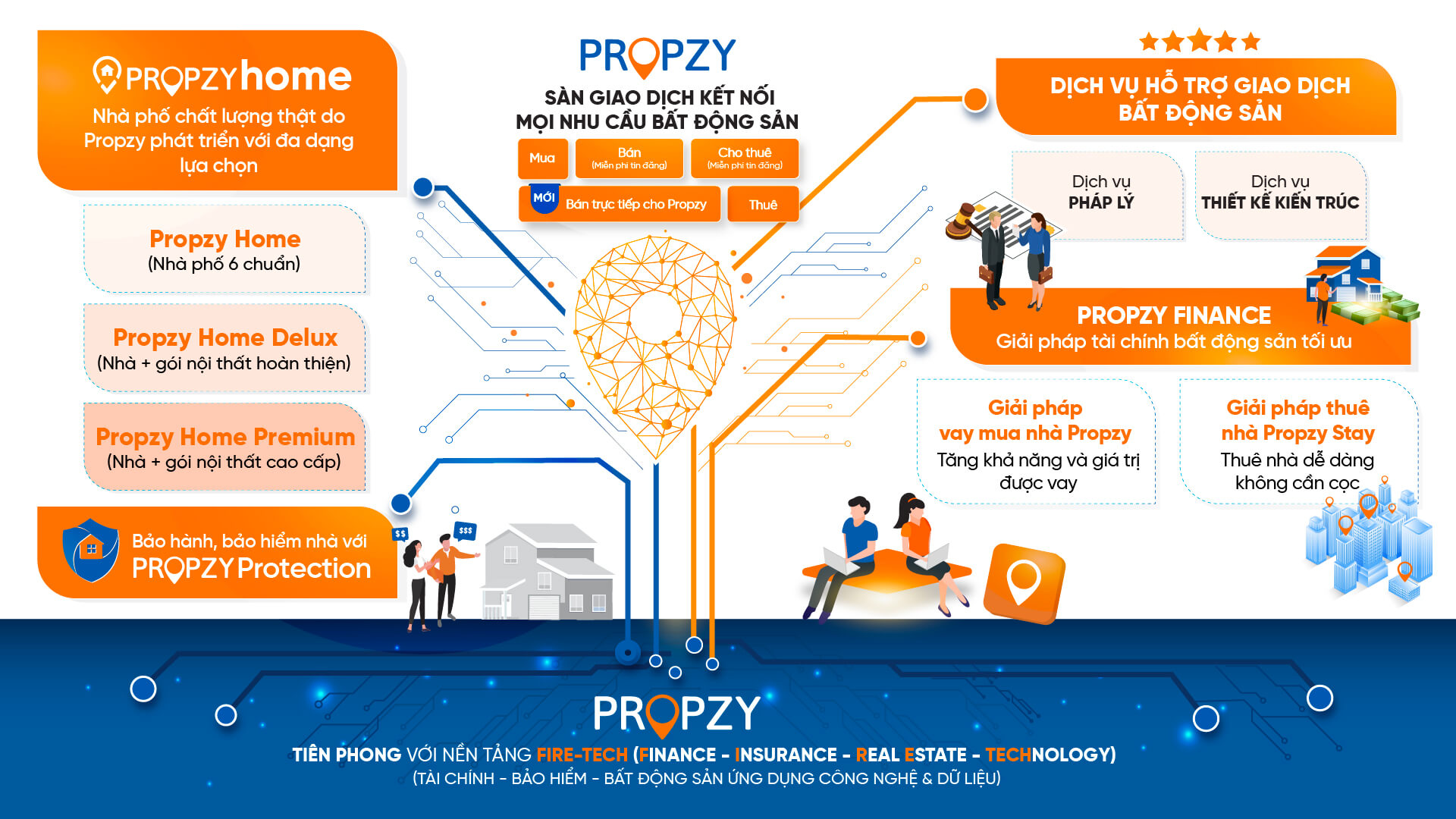 Propzy – Nền tảng bất động sản THẬT được thành lập vào năm 2015 là công ty tiên phong trong lĩnh vực Proptech (bất động sản ứng dụng công nghệ), với hệ sinh thái bao gồm nhiều dịch vụ đáp ứng mọi nhu cầu về bất động sản của tất cả các đối tượng khách hàng: môi giới các giao dịch mua-bán-thuê-cho thuê nhà đất, cung cấp giải pháp tài chính – vay thế chấp cho khách hàng mua nhà, quản lý và khai thác bất động sản ngắn – trung – dài hạn, quản lý vận hành chung cư.