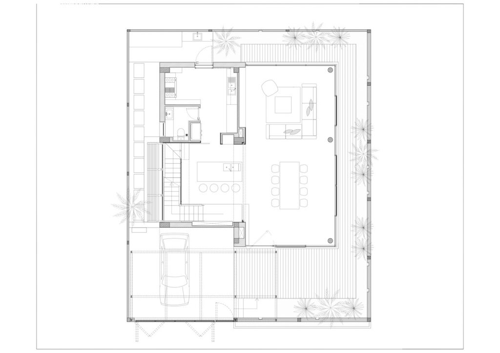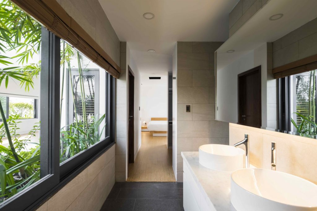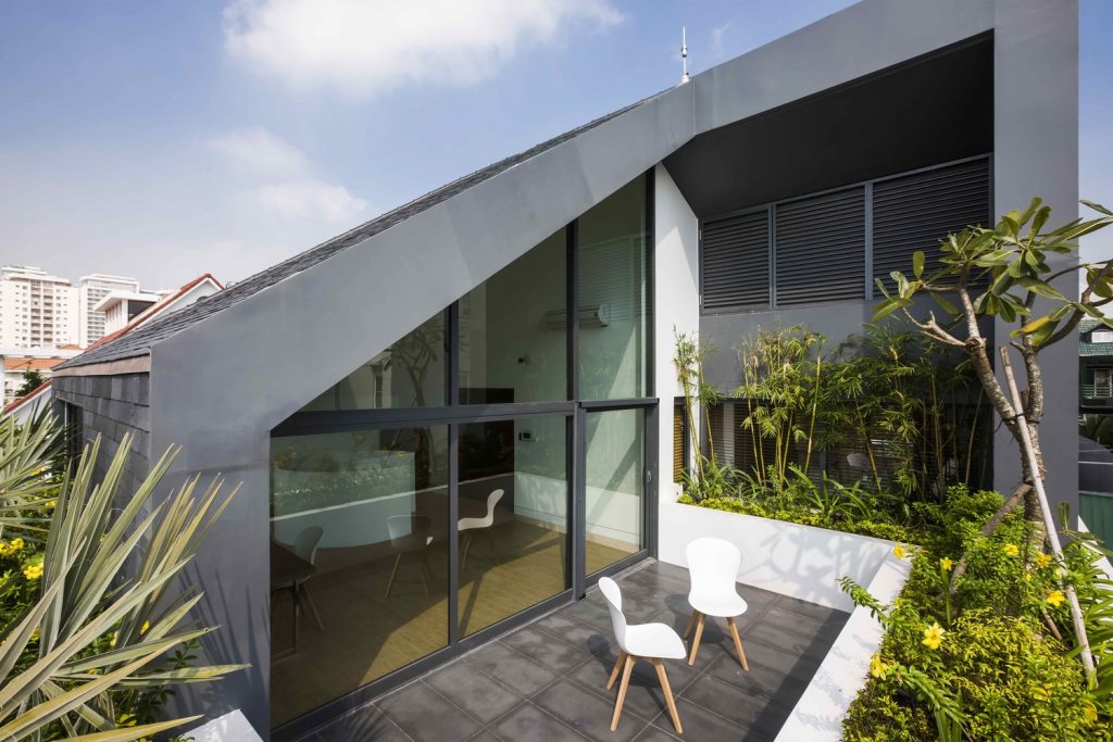 Ngôi nhà được chia thành 3 khối ngăn cách khác nhau để tạo tầm nhìn thoáng cho ngôi nhà 3 tầng trong khu vực.