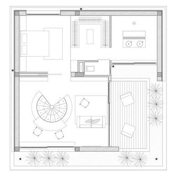 Căn phòng có tầm nhìn về hướng đông, một phần ở phía Bắc và Nam, không gian mở có lối dẫn ra vườn, đầy đủ thông gió tự nhiên.