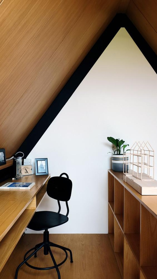 Để dễ dàng phát triển, cơi nới trong tương lai lại vừa tối ưu chi phí xây dựng, các kiến trúc sư đã tính toán kỹ lưỡng về vật liệu xây dựng. Kiến trúc sư ưu tiên sử dụng khung thép, tấm lợp bitum, gỗ dán cho phần lớn bề mặt.