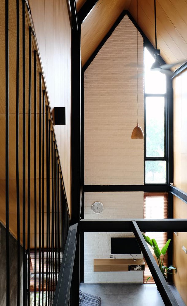 Gỗ dán được sử dụng cho phần lớn bề mặt nội thất như cầu thang, trần nhà, tường, cửa ra vào và một số vật dụng khác. Gỗ dán vừa trang nhã, dễ thi công, tiết kiệm thời gian và giá thành rẻ nên phù hợp với yêu cầu của gia chủ.