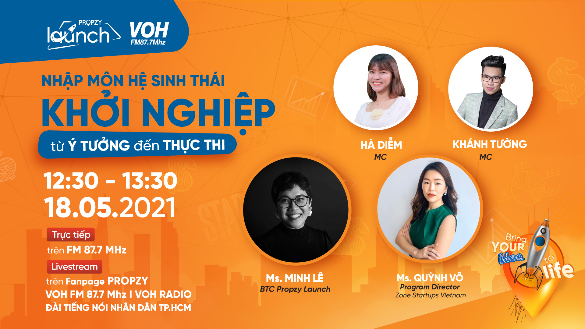 Hệ sinh thái khởi nghiệp  tại Việt Nam đang phát triển, hoạt động ra sao? Chương trình hỗ trợ startup Propzy Launch sẽ diễn ra thế nào? Tất cả sẽ được bật mí trực tiếp trên FM 87.7MHz VOH – Đài tiếng nói nhân dân Thành phố Hồ Chí Minh và Livestream tại Fanpage Propzy từ 12 giờ 30 phút đến 13 giờ ngày 18/5/2021.