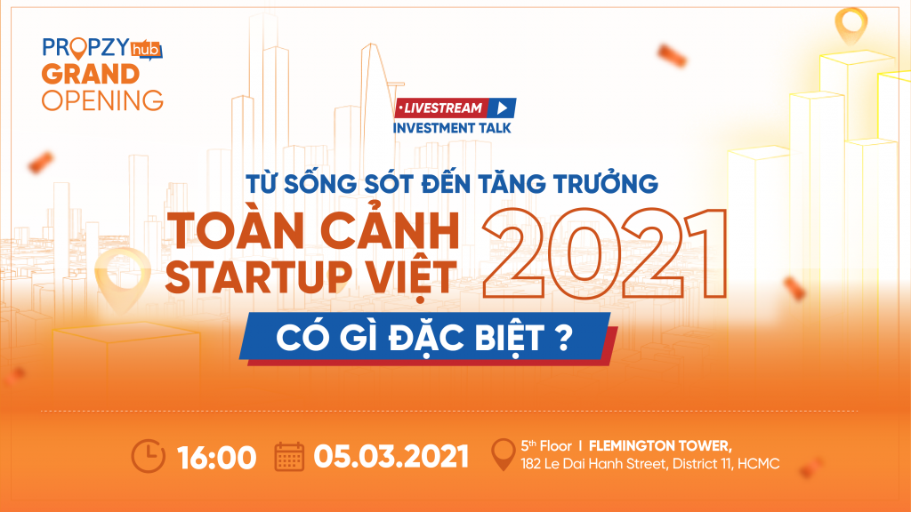 Nổi bật trong chuỗi sự kiện ra mắt Propzy Hub diễn ra ngày 5/3/2021, có hai tọa đàm: “Từ sống sót đến tăng trưởng: Toàn cảnh Startup Việt 2021 có gì đặc biệt?” và “Dự báo xu hướng đầu tư Việt Nam 2021”. Các nhà đầu tư từ quỹ FEBE Ventures, Beenext và lãnh đạo tập đoàn An Gia, Propzy, cùng các startup LoShip, Jupviec…sẽ chia sẻ kinh nghiệm thực tiễn tại sự kiện do Propzy tổ chức.