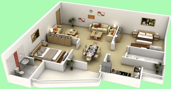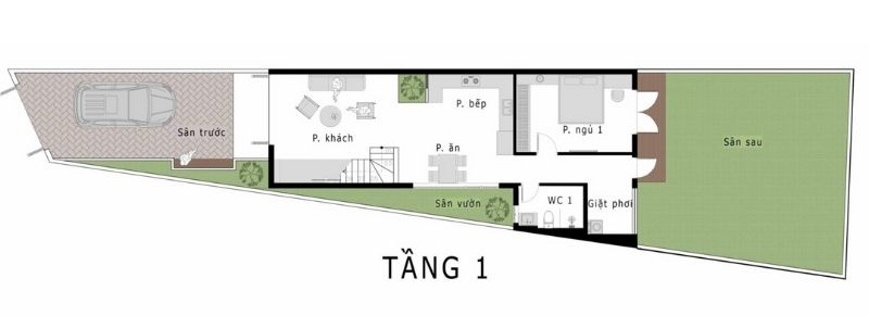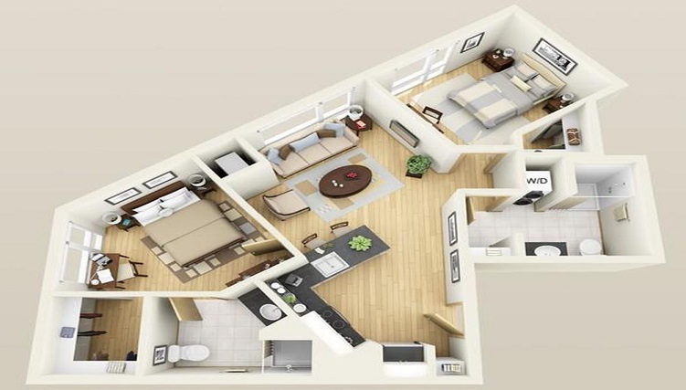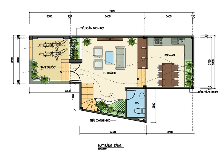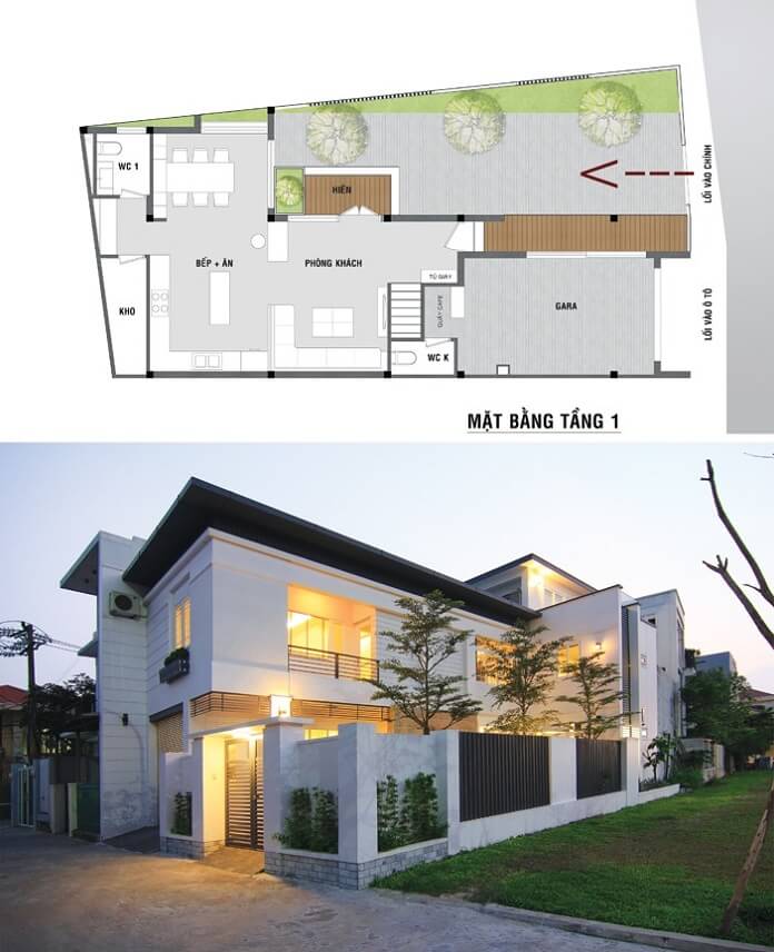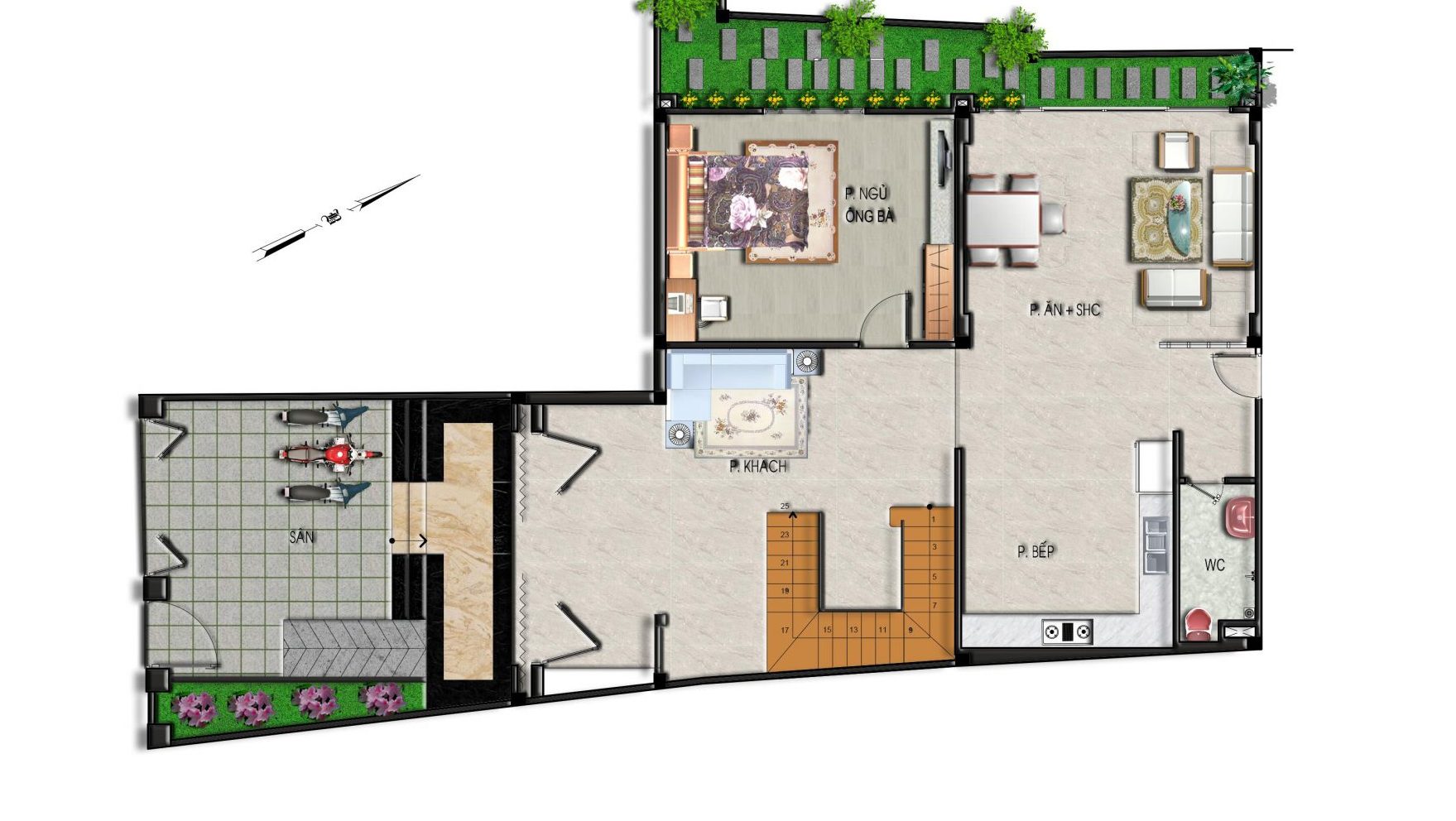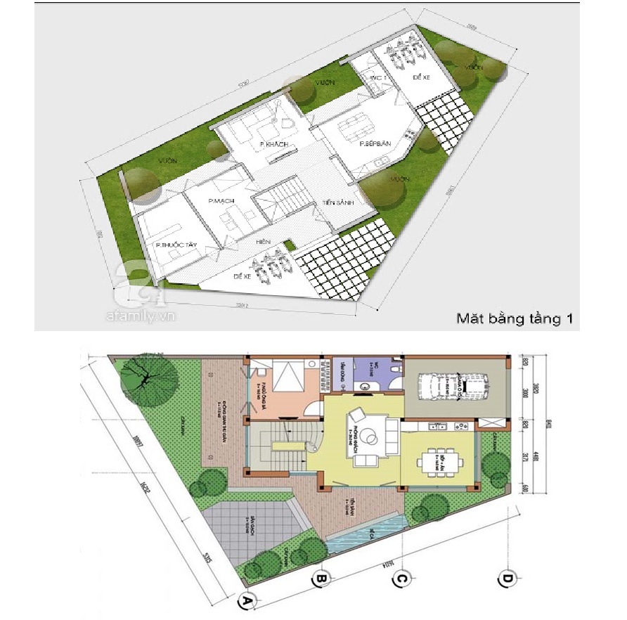 Minh họa mặt bằng thiết kế nhà khuyết góc