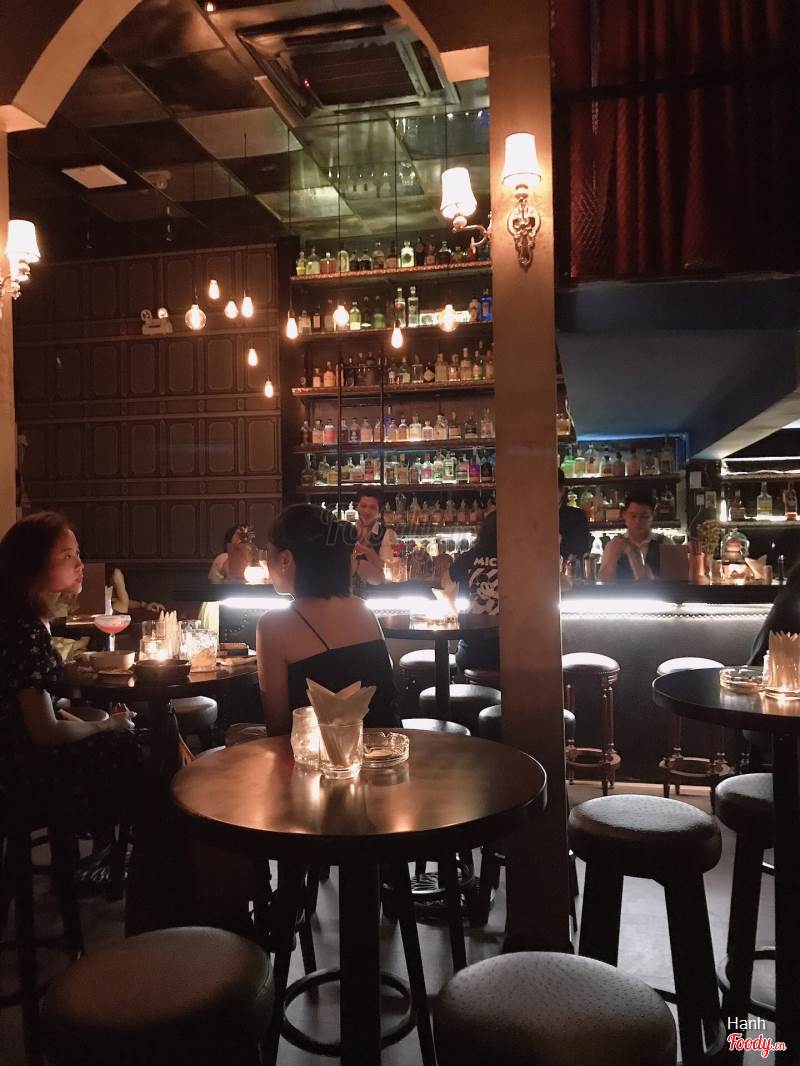 Đến đây, bạn có thể thoải mái chụp những bức hình ảo diệu, từ khu vực quầy bar đến ban công của quán đều là địa điểm lên hình chất lừ. Ở đây, chất lượng phục vụ được nhiều thực khách đánh giá cao, các bartender luôn chiều lòng thực khách nếu như bạn muốn một loại đồ uống không có sẵn trong thực đơn. Quán mở cửa từ 18h đến 2h sáng hôm sau. Giá đồ ăn và thức uống ở đây rơi vào khoảng 180.000-320.000 đồng.