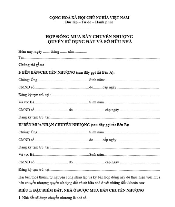 Hợp đồng mua bán nhà và hợp đồng mua bán nhà hợp pháp