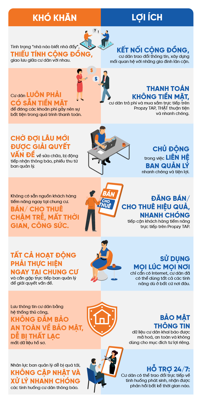 Thấu hiểu những khó khăn mà cư dân gặp phải trong quá trình sinh sống tại căn hộ chung cư, hãy cùng Propzy điểm qua những lợi ích mà Ứng dụng Propzy TAP mang lại trong việc giúp cư dân tiết kiệm thời gian, tận hưởng cuộc sống với sự phát triển của công nghệ: