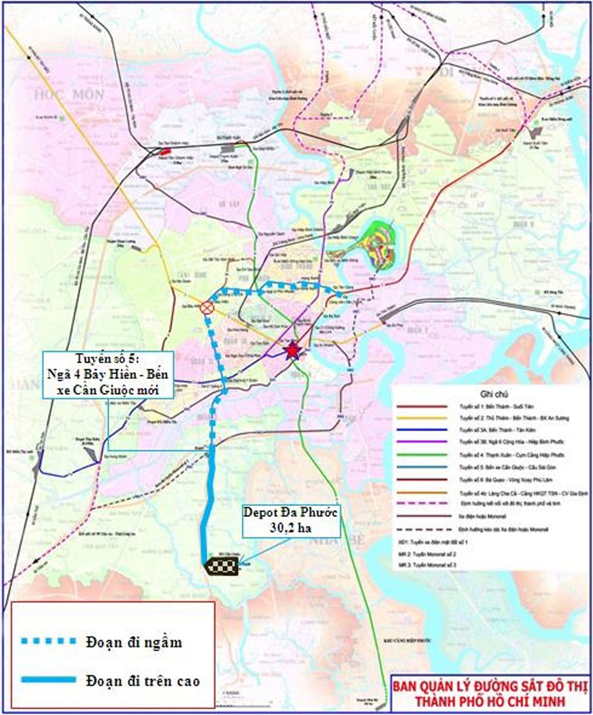 Tuyến Metro số 5: Depot Đa Phước – Cần Giuộc – Cầu Sài Gòn