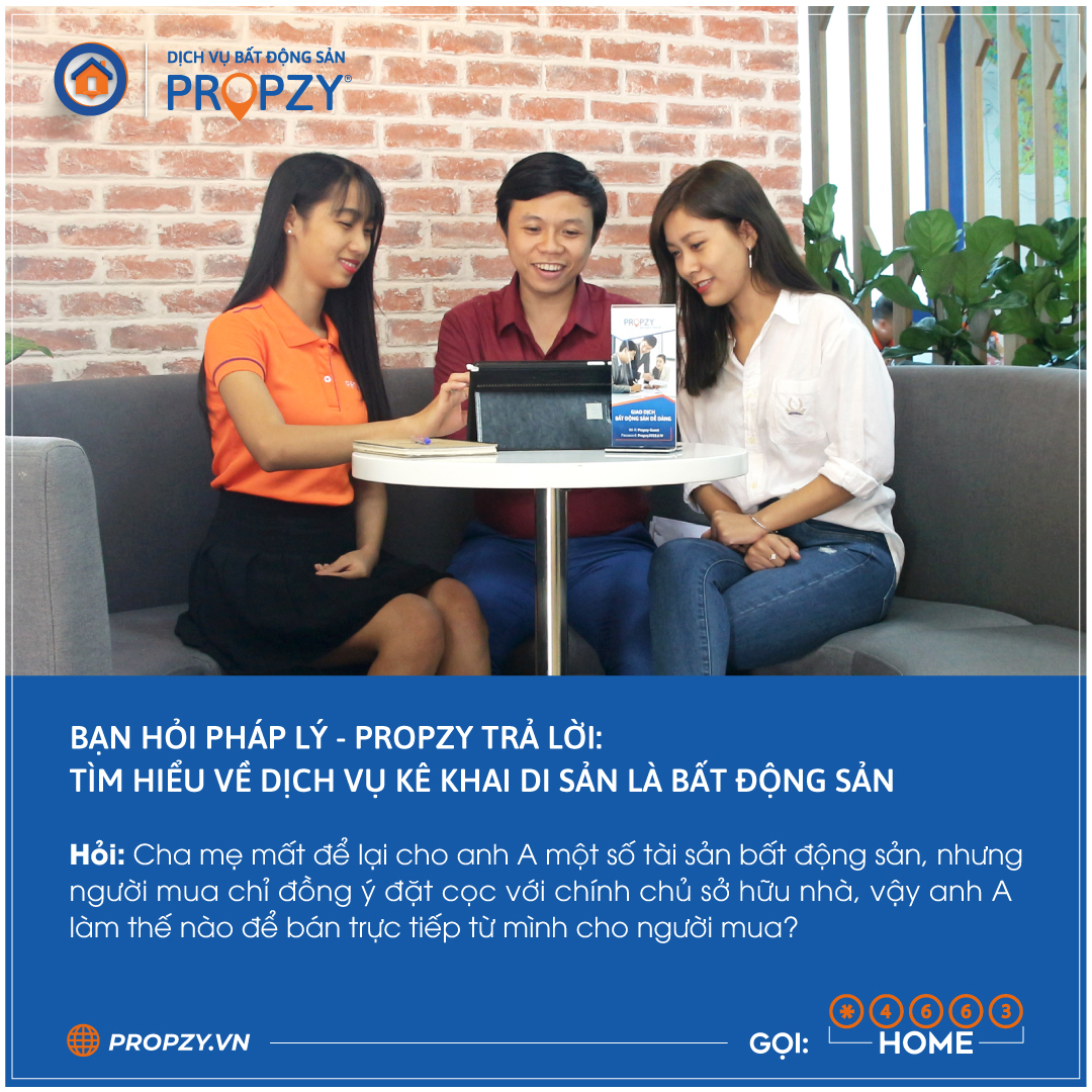- Bước 4: Sau khi thực hiện xong thủ tục khai nhận di sản thừa kế, Propzy tiến hành các thủ tục để chuyển nhượng phần nhà đất này cho bên thứ ba theo quy định pháp luật và đảm bảo quá trình chuyển nhượng diễn ra thuận lợi, suôn sẻ đáp ứng nhu cầu cho cả bên chuyển nhượng và nhận chuyển nhượng như: