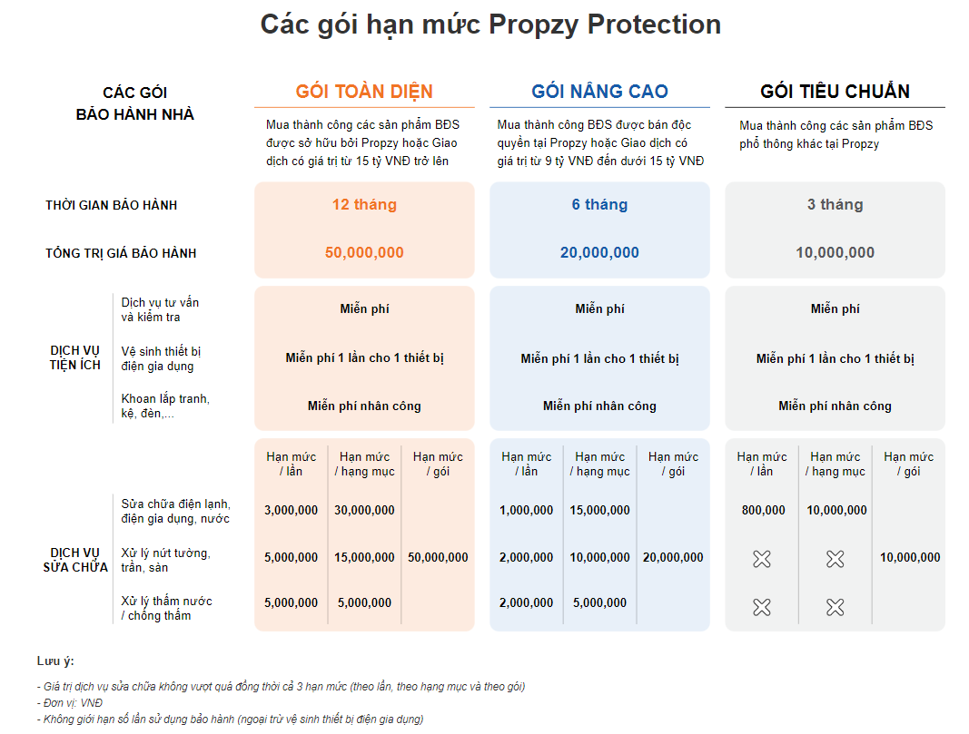 Các gói hạn mức PROPZY PROTECTION được áp dụng khi mua bất động sản tại PROPZY: