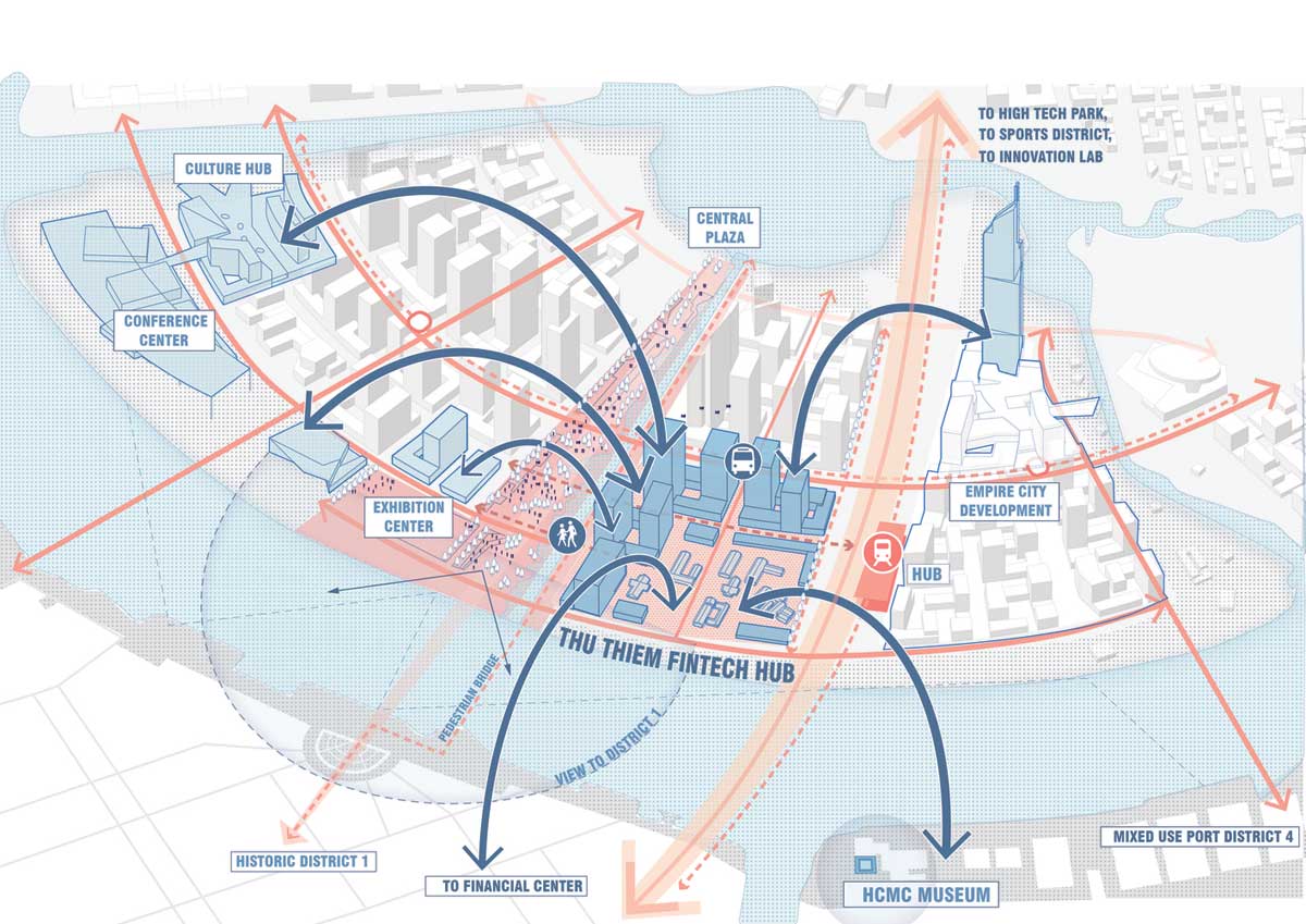 Khu đô thị mới Thủ Thiêm được quy hoạch trở thành trung tâm công nghệ tài chính của TP.HCM. Đây là vị trí lý tưởng cho các hoạt động đổi mới sáng tạo ven mặt nước trong cự ly gần tới trung tâm hiện hữu thành phố.
