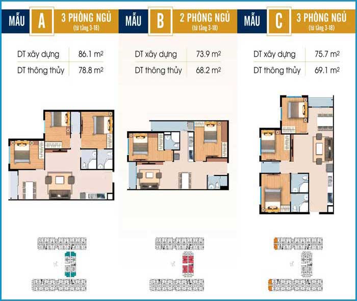 - Quy mô: 19.865m2 – 1 block 9 tầng và 2 block 5 tầng