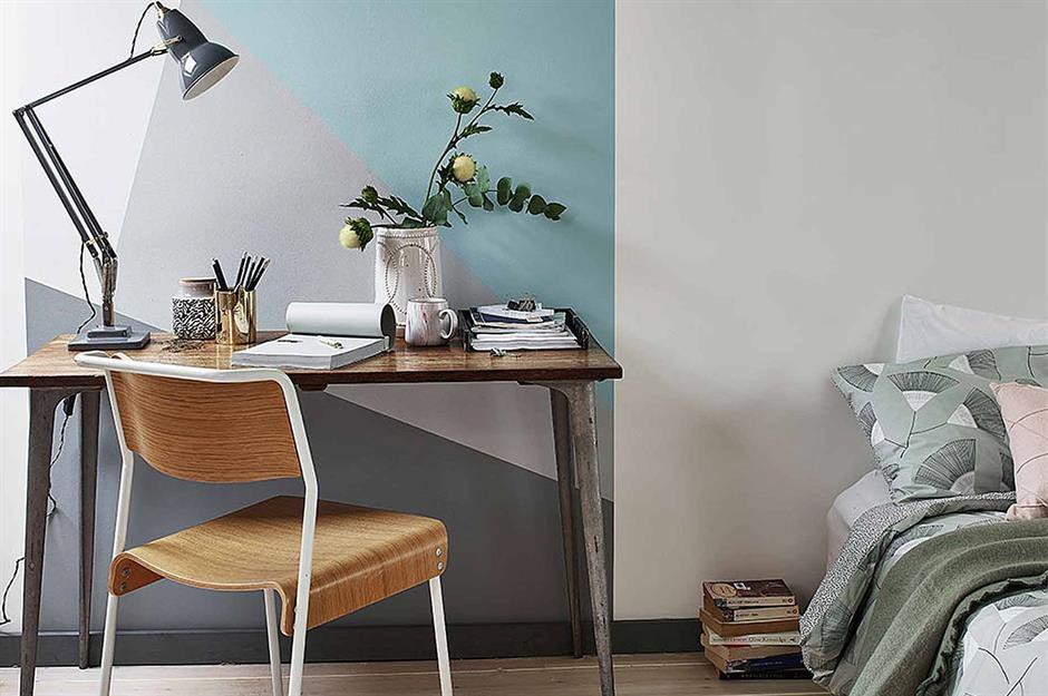 Bức tường sơn màu theo các khối hình học độc đáo như khiến căn phòng được thổi thêm sức sống mới.