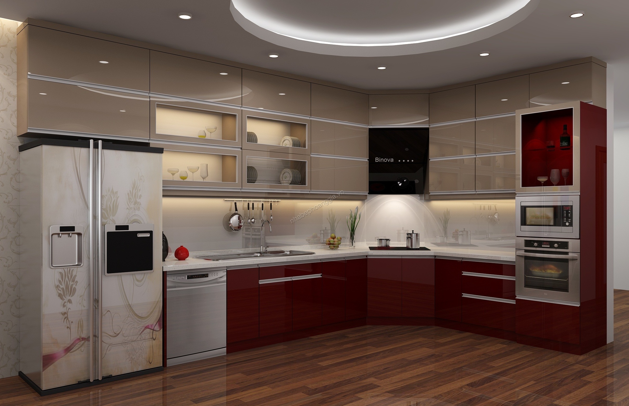 Với trần bếp có độ cao vừa phải thì một chiếc tủ bếp kịch trần sẽ đem đến một không gia thật ấm cúng, sang trọng. Kích thước rộng và độ cao phủ tường, sẽ thay thế màu sắc cho tường bếp.